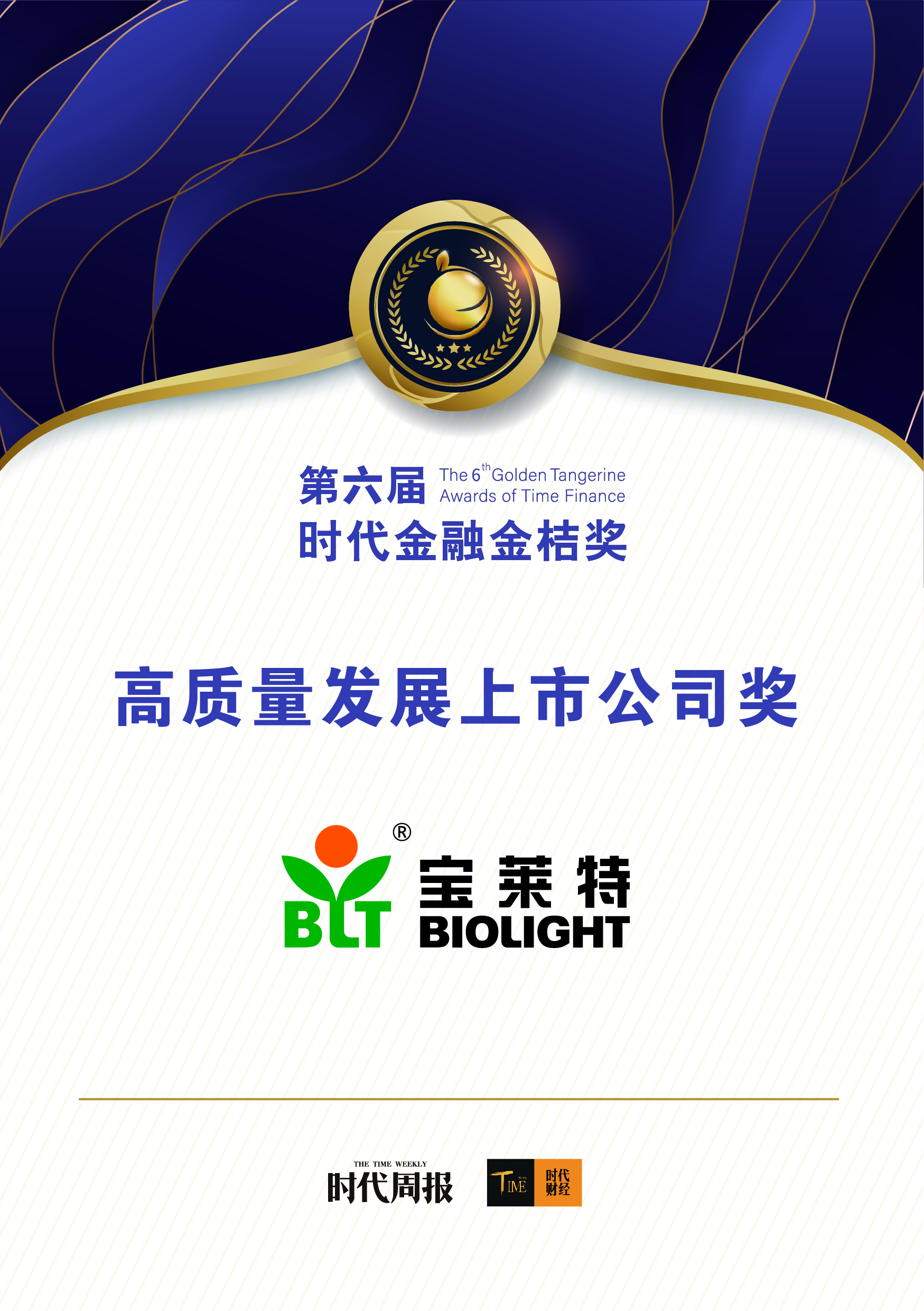 11月29日,由时代传媒集团发起的“2021金桔奖”榜单揭晓。凭借稳健的业绩、良好品牌形象和高质量的管理运营,宝莱特(证券代码:300246)荣获2021第六届时代金桔奖 “高质量发展上市公司奖”。